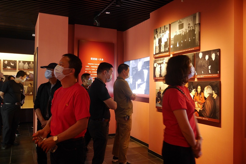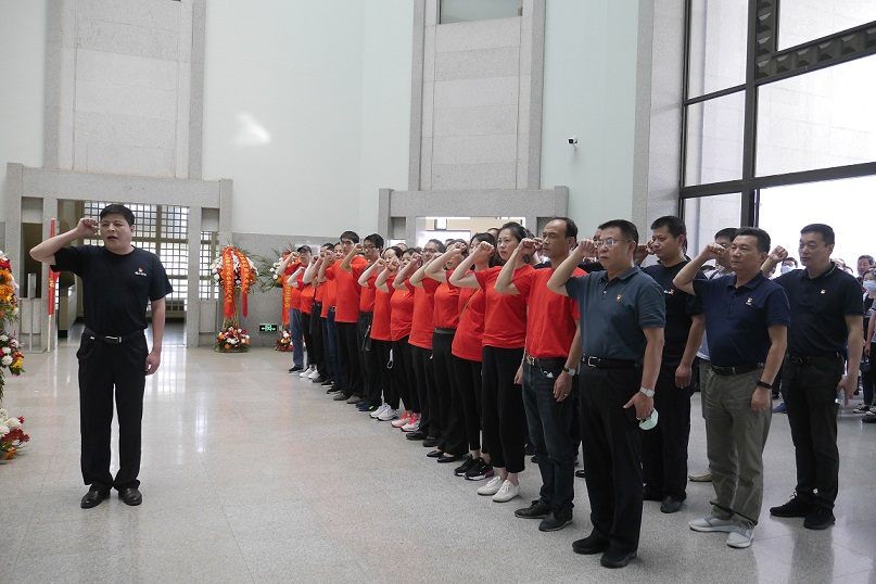全體黨員在周恩來紀(jì)念館主館,在鮮紅的黨旗下舉手宣誓,重溫入黨誓詞。