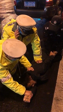 2020年3月26日晚23:08分,鎮(zhèn)江市保安服務(wù)總公司蘇LV6251巡防車行駛至中山東路山門口附近的江蘇銀行時,發(fā)現(xiàn)一起車輛事故,肇事車輛將隔離桿撞倒幾十米。當(dāng)時兩名事故大隊的警務(wù)人員在事故現(xiàn)場試圖控制肇事司機,但該司機極力阻撓反抗,把警務(wù)執(zhí)法儀搶奪后扔掉,并襲擊警務(wù)人員。見此緊急情況,巡防隊員立即向當(dāng)班隊長請示匯報,征得同意后,下車協(xié)助警務(wù)人員將肇事司機控制住。期間,該司機反抗力度較大,并動手打人,隊員石佳亮頸部被打傷,隊員張震現(xiàn)場錄像取證,隊員徐輝撥打110報警。兩名警務(wù)人員在三名巡防隊員的協(xié)助下,共同將肇事司機制服。直到增援警務(wù)人員到達后,蘇LV6251巡防車組才離開現(xiàn)場回到公司。事后得知肇事司機為酒后駕駛。