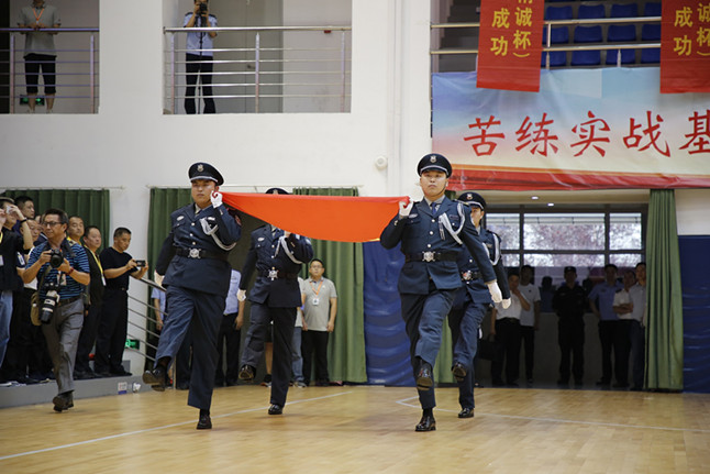 開幕儀式上,我公司4名保安員擔任入場儀式護旗手,他們英姿颯爽、整齊劃一,得到了在場領導和全體人員的一致好評。同時,我公司夏林軍同志擔任了保安員領宣人,周俊同志代表全體參賽選手宣誓,管輝同志代表全體裁判員宣誓。