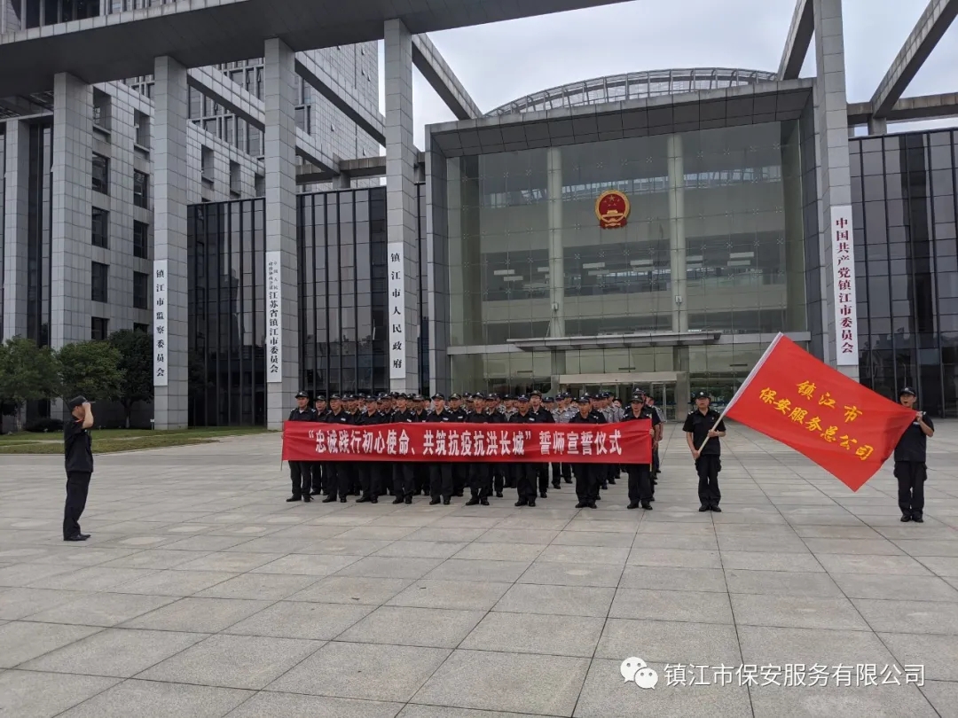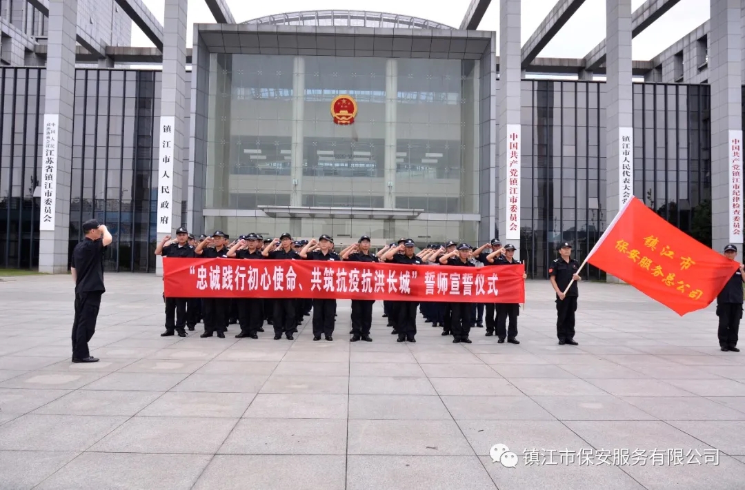 2020年7月24日,鎮(zhèn)江市保安服務(wù)有限公司駐市行政中心保安大隊處突機動隊60名隊員,在市民廣場舉行“忠誠踐行初心使命,共筑抗疫抗洪長城”宣誓儀式。在隊長王斌同志的帶領(lǐng)下,隊員們宣讀了誓詞。
