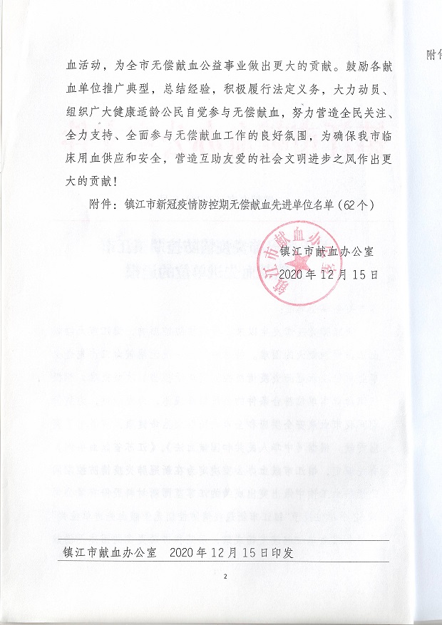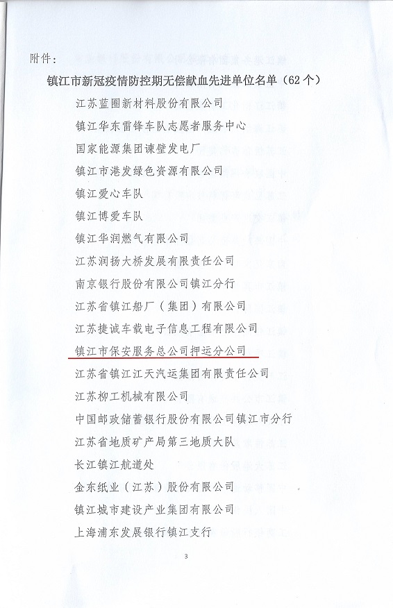 近日,喜訊傳來,鎮江市獻血辦公室授予我公司押運分公司新冠疫情防控期無償獻血先進單位獎。
