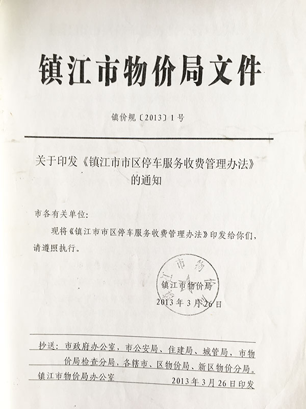 | 鎮價規〔2013〕1號 | 鎮江市保安 服務公司 |